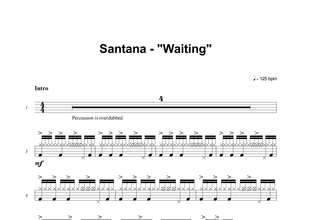 Santana《Waiting》架子鼓谱
