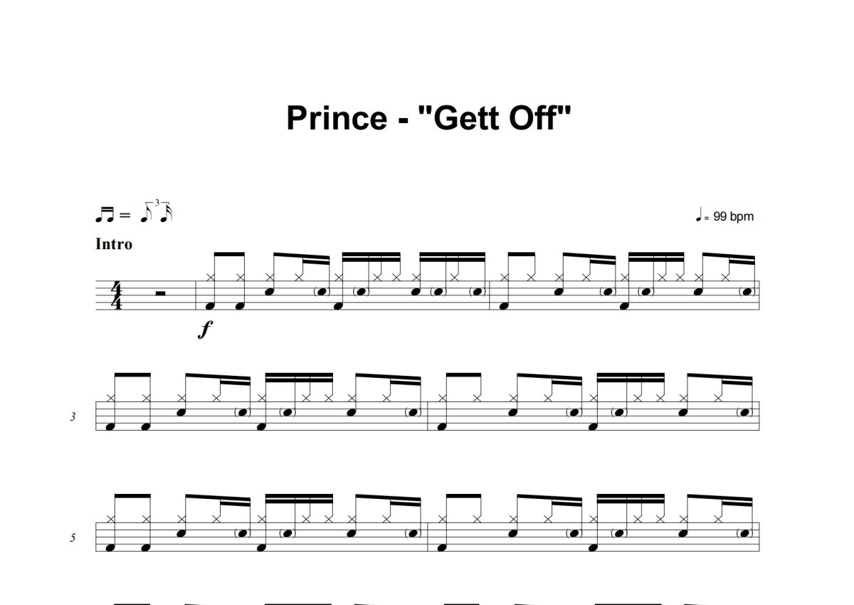 Prince《Gett Off》架子鼓谱