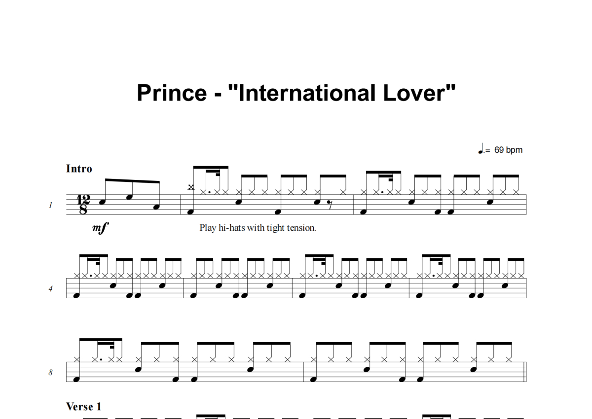 Prince《International Lover》架子鼓谱