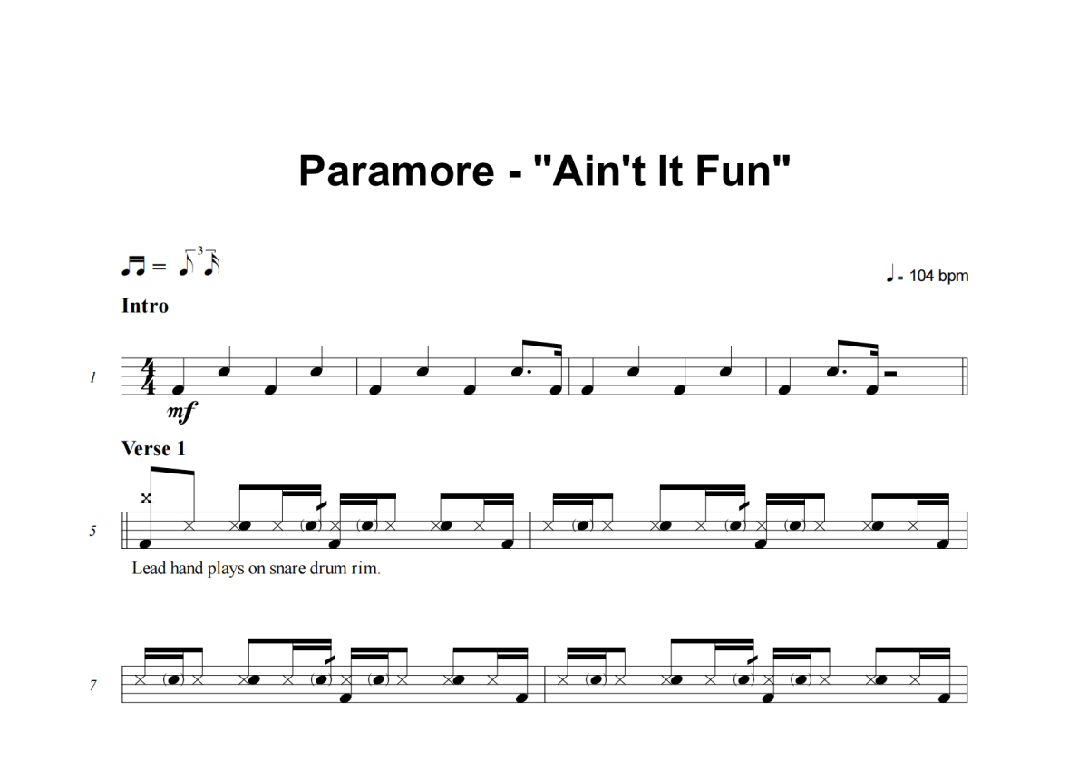 Paramore《Ain't It Fun》架子鼓谱