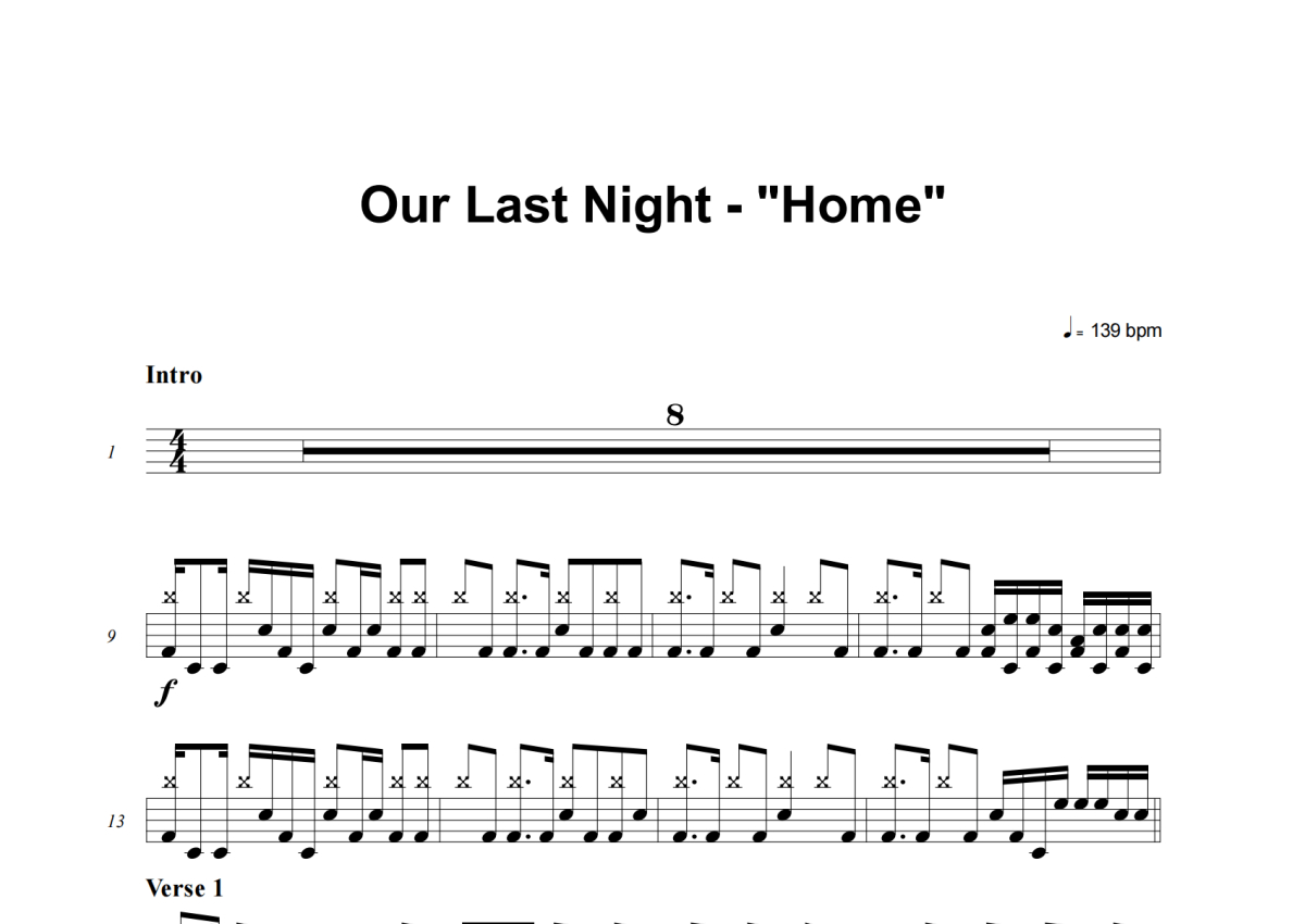 Our Last Night《Home》架子鼓谱