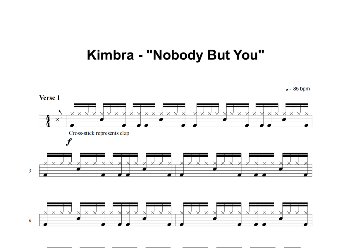 《Nobody But You》是Kimbra演唱的一首歌曲,这份架子鼓谱共有六张高清图谱,图谱由 @举个例子 编配上传,图谱使用五线谱编配,使用这份Nobody But You架子鼓谱,你将能够轻松地敲打出这首Kimbra的Nobody But You,快来尝试吧。