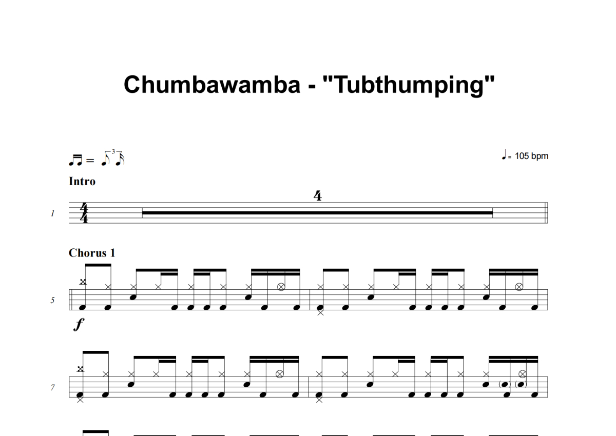 Chumbawamba《Tubthumping》架子鼓谱