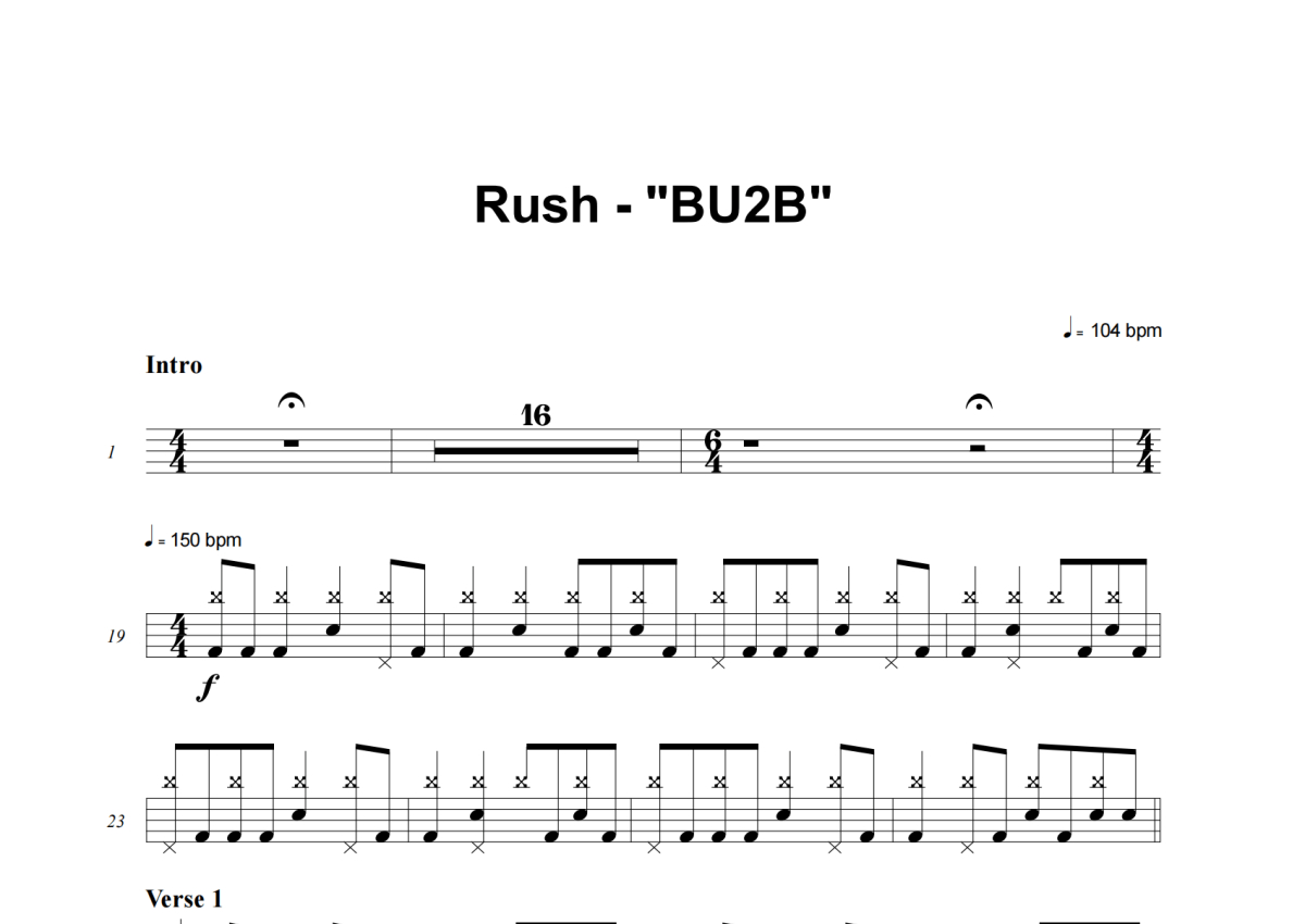 《BU2B》是Rush演唱的一首歌曲,这份架子鼓谱共有八张高清图谱,图谱由 @举个例子 编配上传,图谱使用五线谱编配,使用这份BU2B架子鼓谱,你将能够轻松地敲打出这首Rush的BU2B,快来尝试吧。