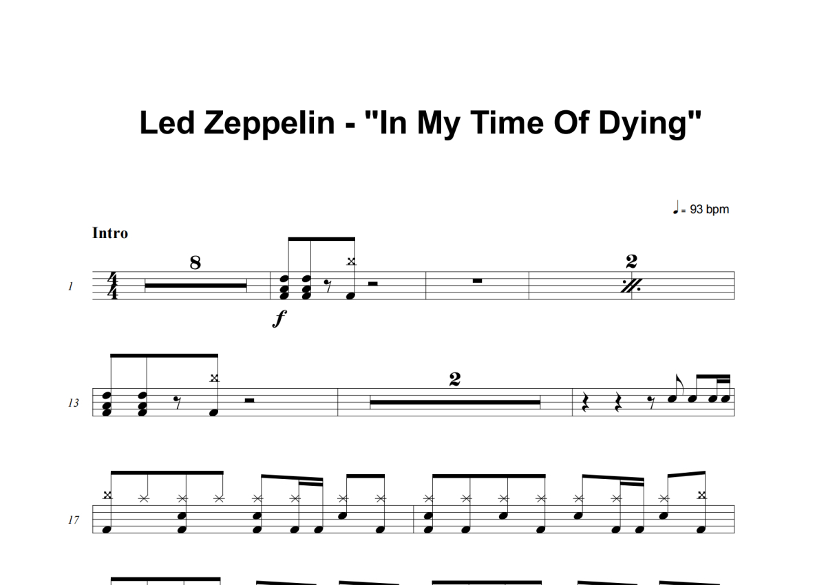 Led Zeppelin《In My Time Of Dying》架子鼓谱
