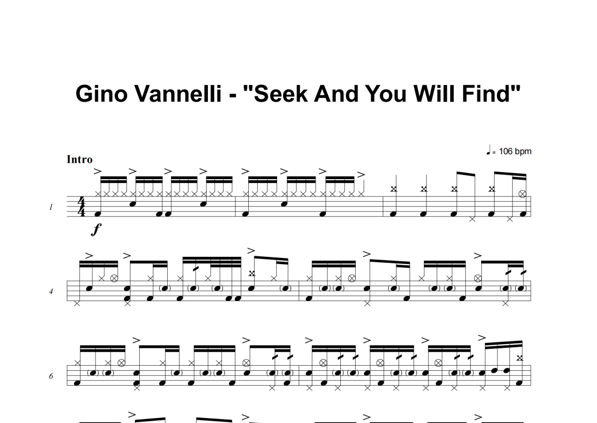 《Seek And You Will Find》是Gino Vanelli演唱的一首歌曲,这份架子鼓谱共有八张高清图谱,图谱由 @举个例子 编配上传,图谱使用五线谱编配,使用这份Seek And You Will Find架子鼓谱,你将能够轻松地敲打出这首Gino Vanelli的Seek And You Will Find,快来尝试吧。