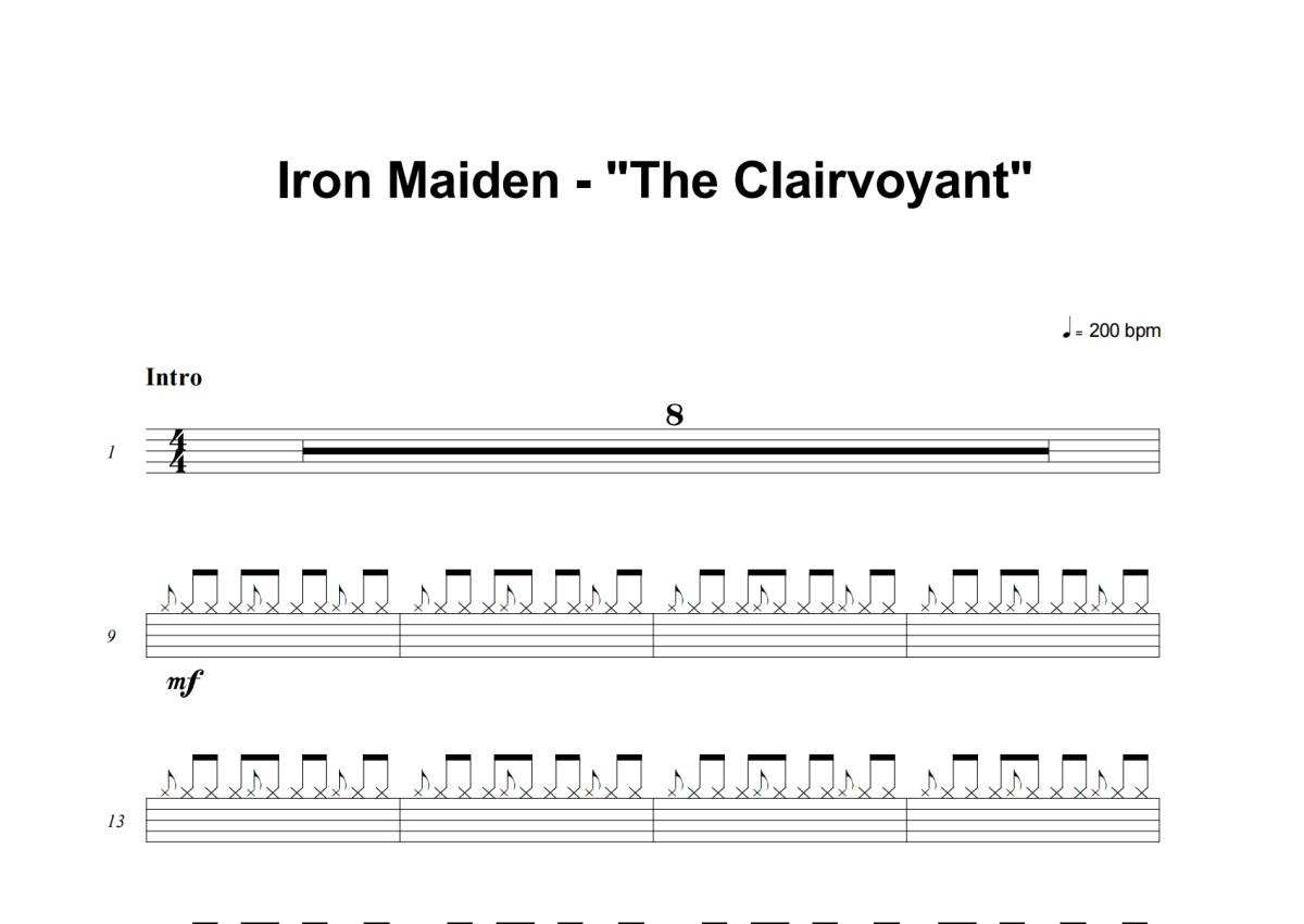 Iron Maiden《The Clairvoyant》架子鼓谱