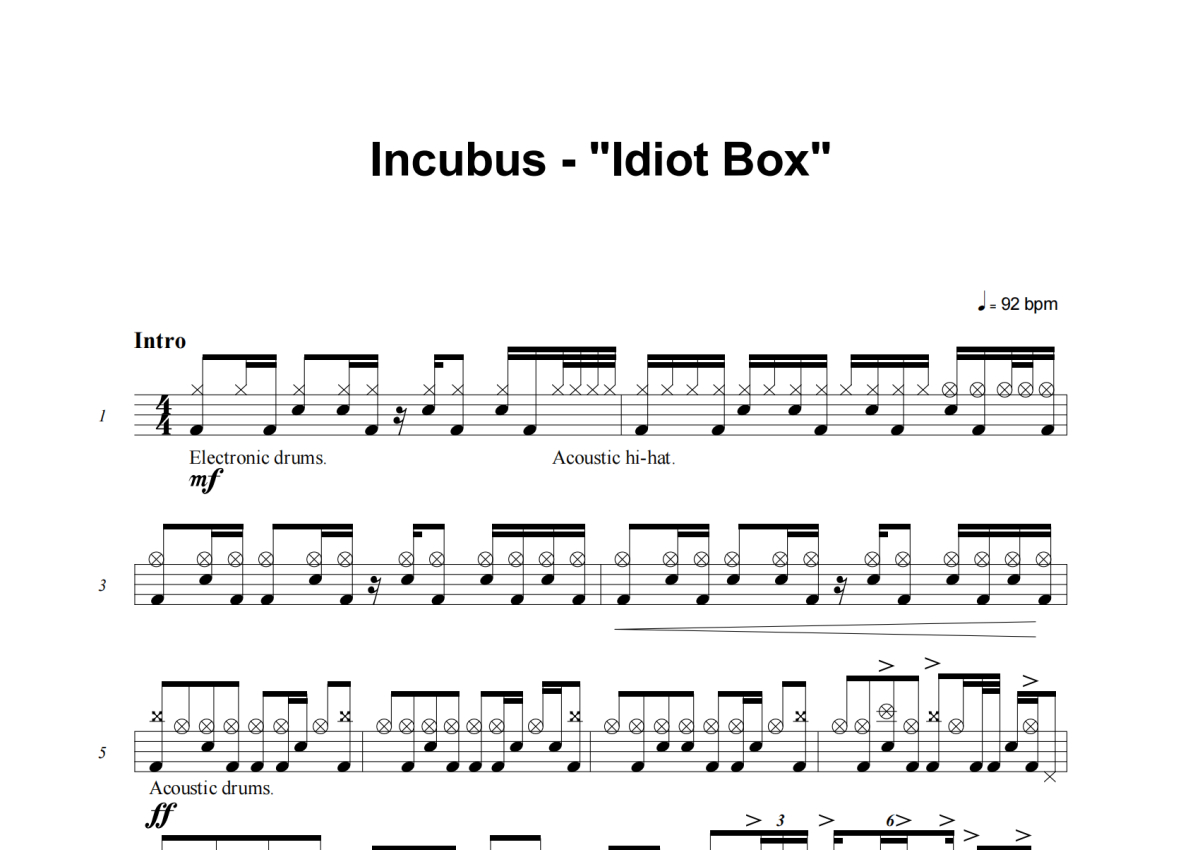 Incubus《Idiot Box》架子鼓谱