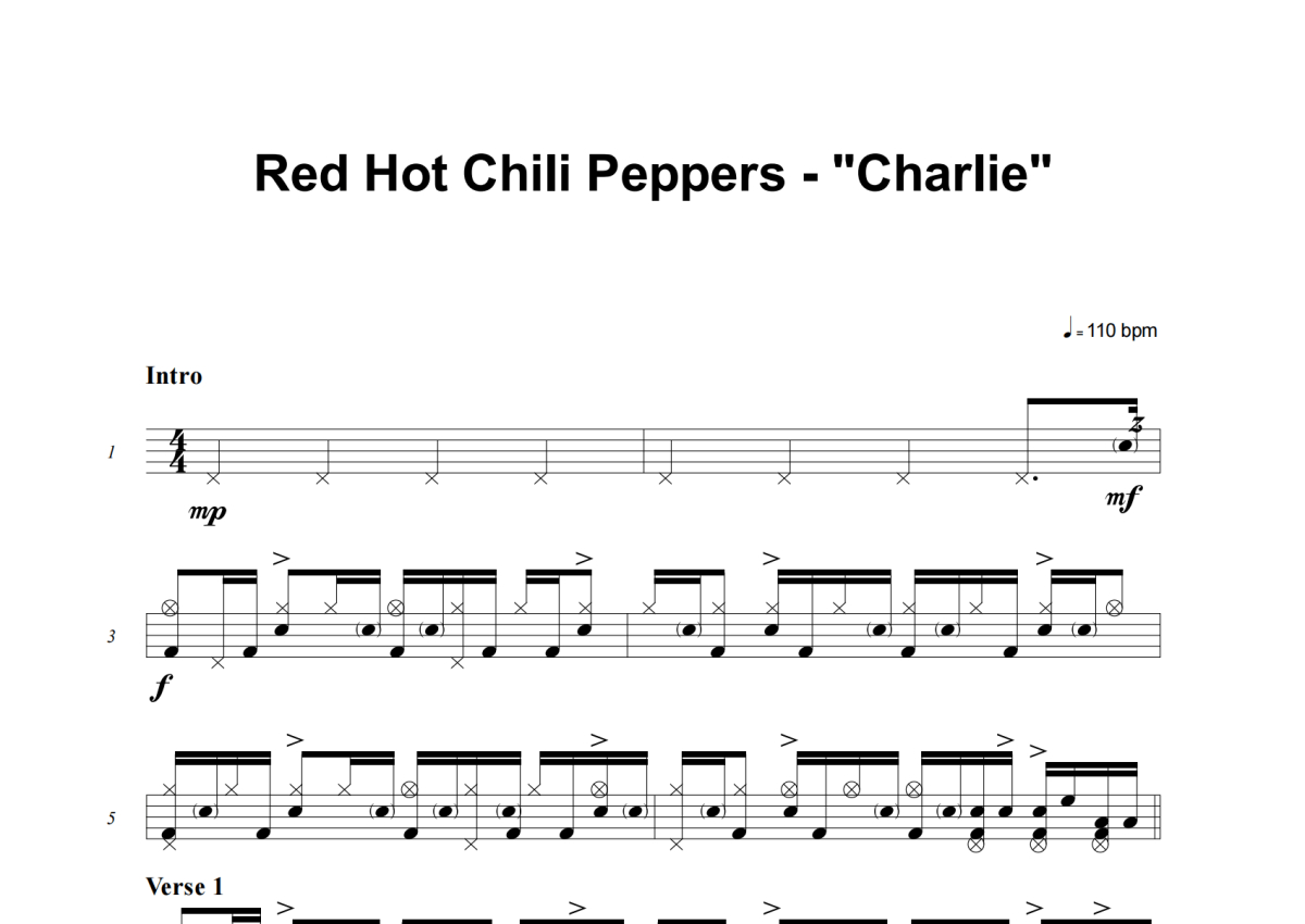 Red Hot Chili Peppers《Charlie》架子鼓谱