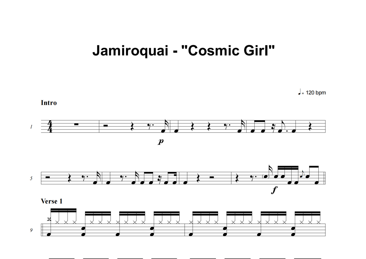Jamiroquai《Cosmic Girl》架子鼓谱