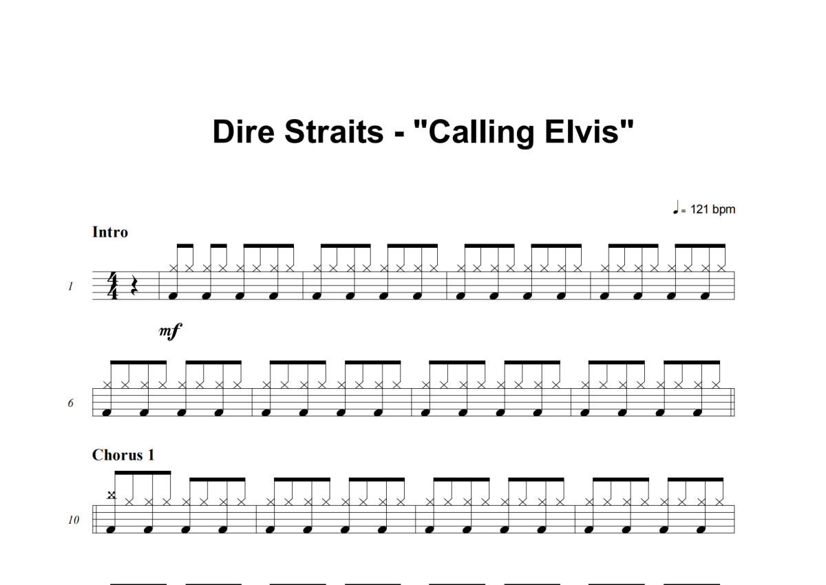 Dire Straits《Calling Elvis (Easy Version)》架子鼓谱