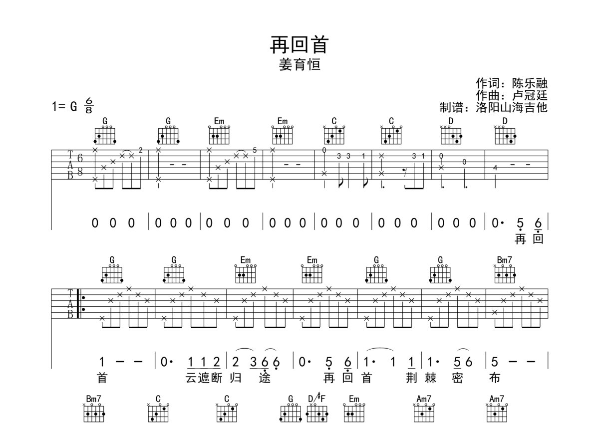 姜育恒《再回首》吉他谱 - G调弹唱六线谱