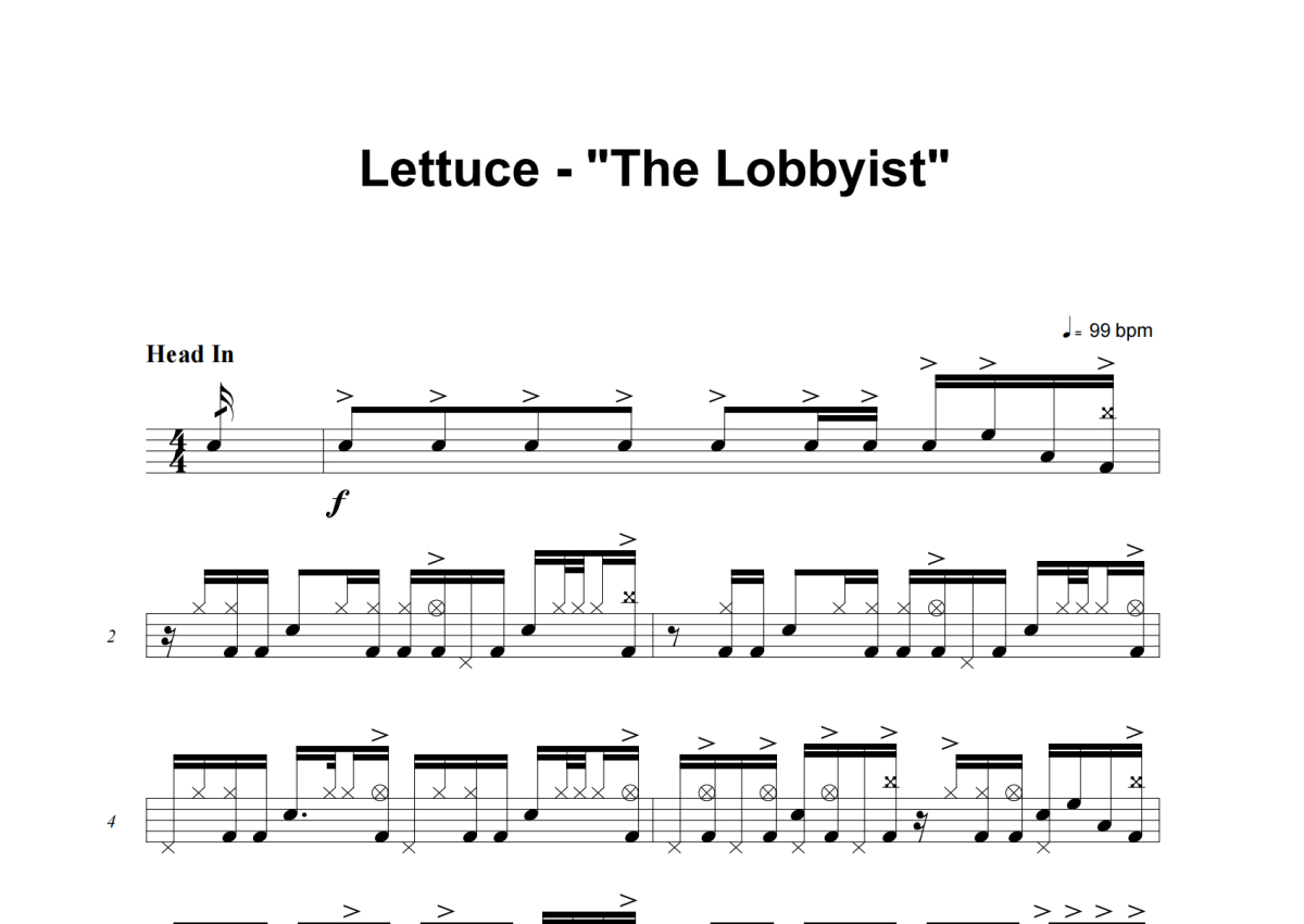 《The Lobbyist》是Lettuce演唱的一首歌曲,这份架子鼓谱共有七张高清图谱,图谱由 @举个例子 编配上传,图谱使用五线谱编配,使用这份The Lobbyist架子鼓谱,你将能够轻松地敲打出这首Lettuce的The Lobbyist,快来尝试吧。