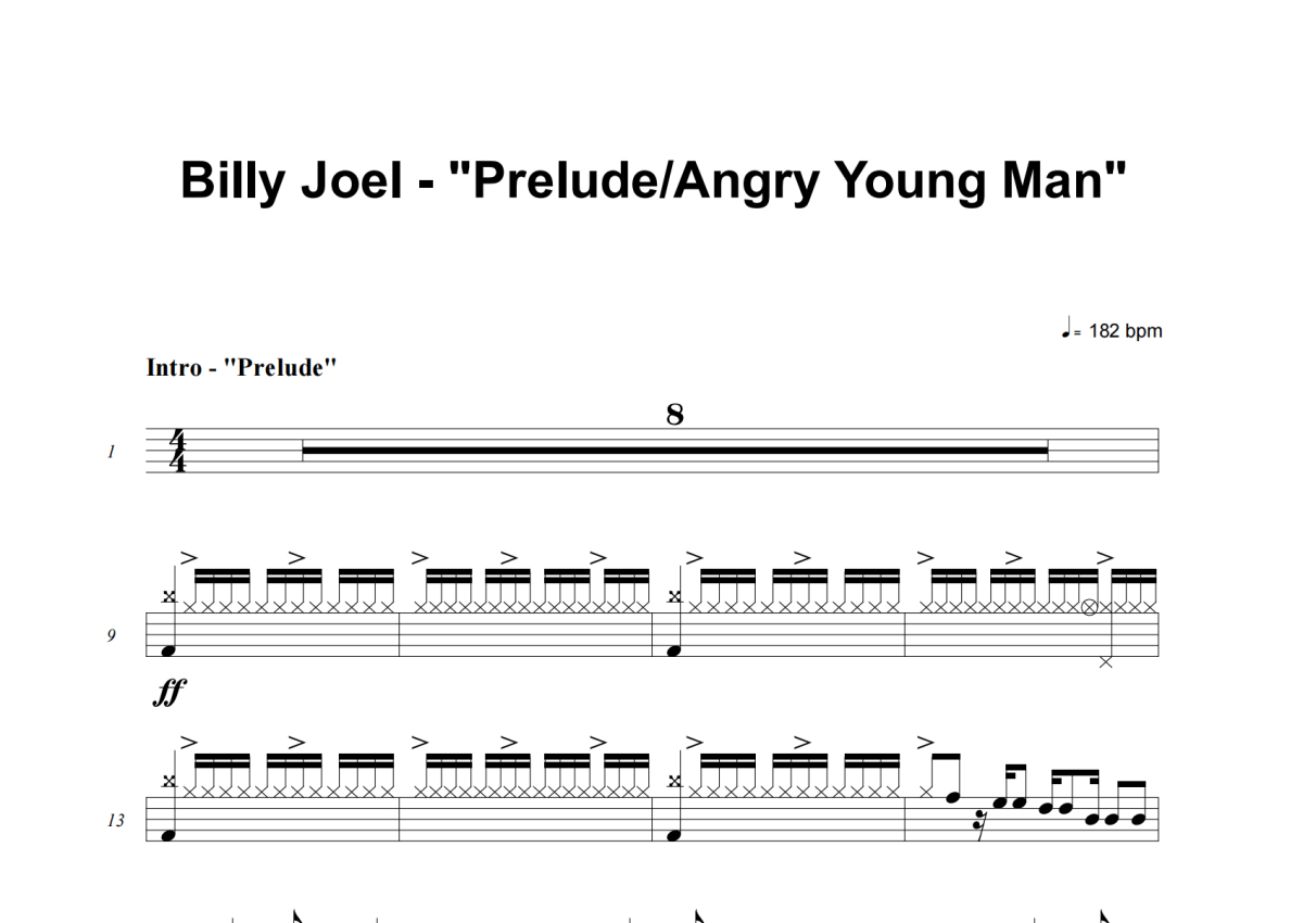 Billy Joel《Prelude_Angry Young Man》架子鼓谱