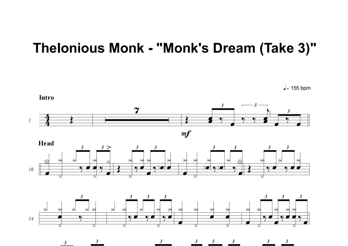 Thelonious Monk《Monk's Dream (Take 3)》架子鼓谱
