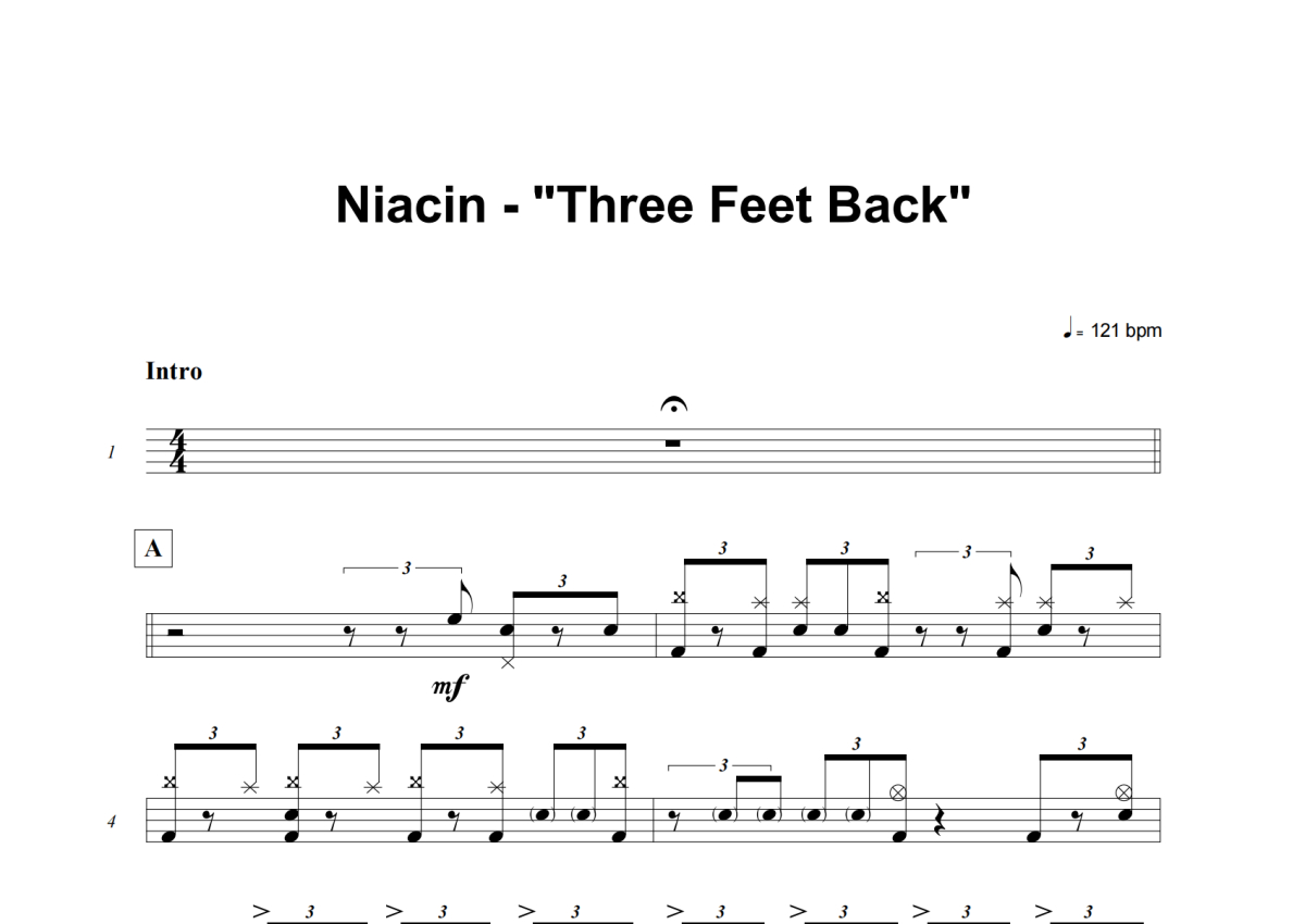 Niacin《Three Feet Back》架子鼓谱