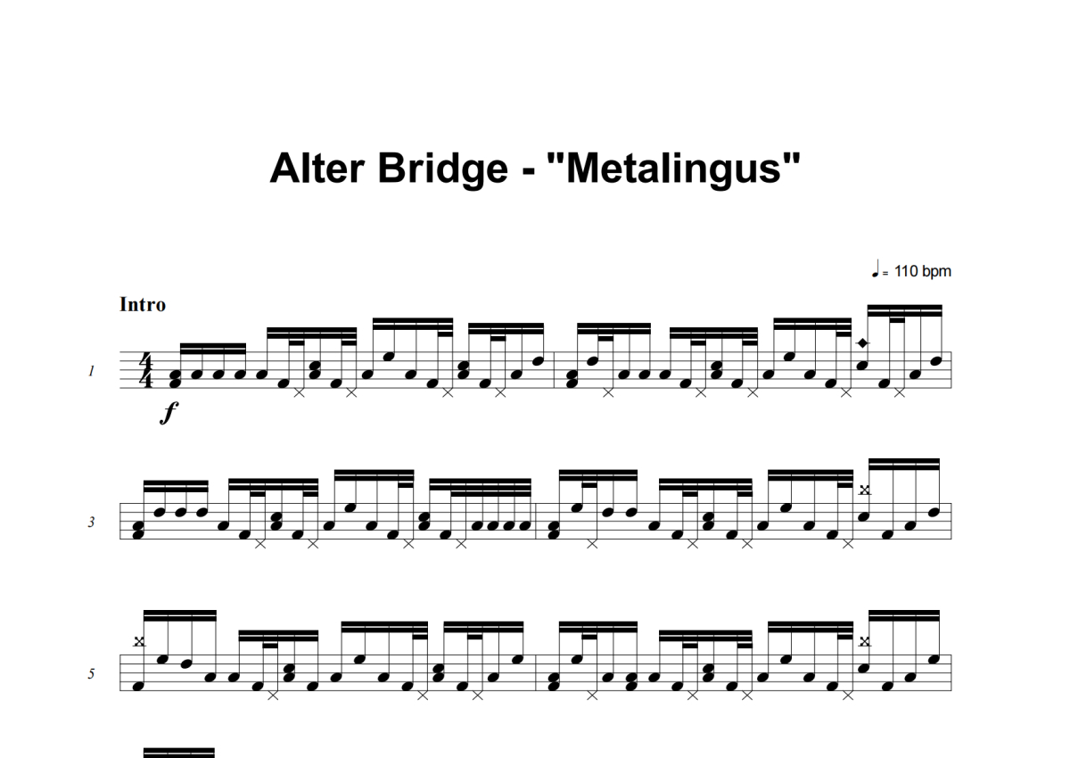 《Metalingus》是Alter Bridge演唱的一首歌曲,这份架子鼓谱共有七张高清图谱,图谱由 @失眠的土豆 编配上传,图谱使用五线谱编配,使用这份Metalingus架子鼓谱,你将能够轻松地敲打出这首Alter Bridge的Metalingus,快来尝试吧。