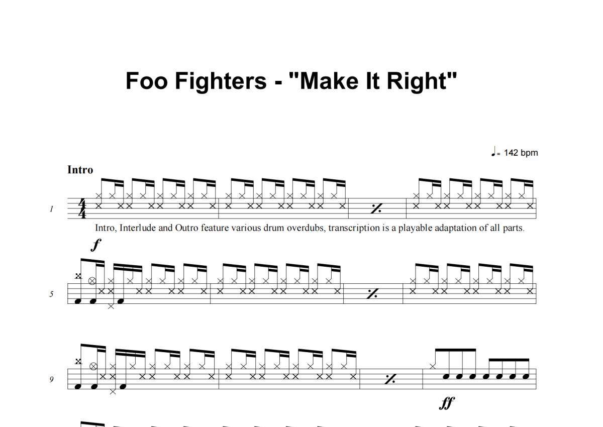 Foo Fighters《Make It Right》架子鼓谱