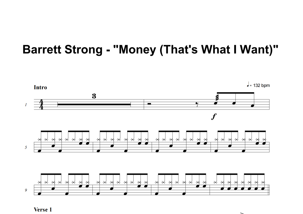 Barrett Strong《Money (That's What I Want)》架子鼓谱