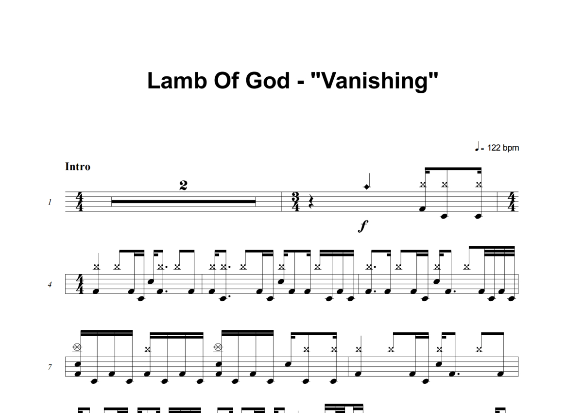 《Vanishing》是Lamb Of God演唱的一首歌曲,这份架子鼓谱共有八张高清图谱,图谱由 @失眠的土豆 编配上传,图谱使用五线谱编配,使用这份Vanishing架子鼓谱,你将能够轻松地敲打出这首Lamb Of God的Vanishing,快来尝试吧。