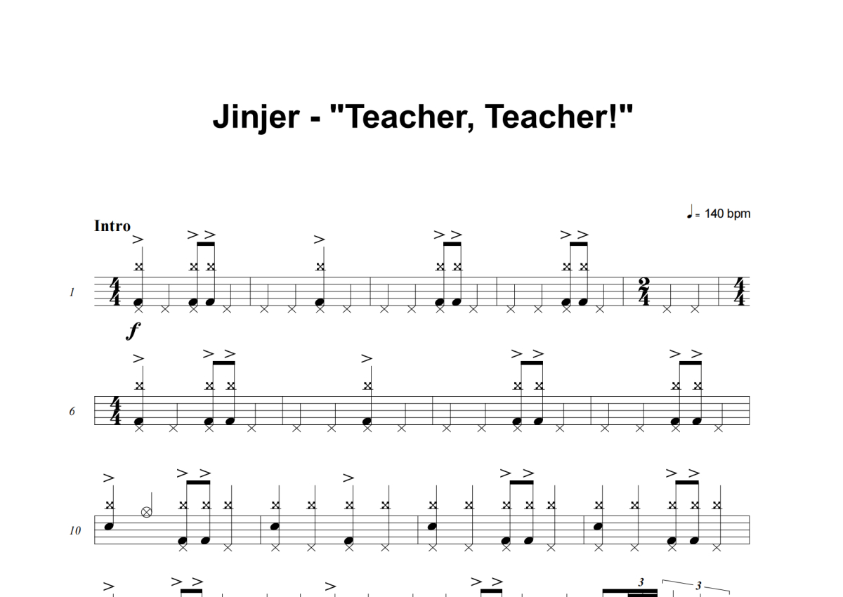 Jinjer《Teacher, Teacher!》架子鼓谱