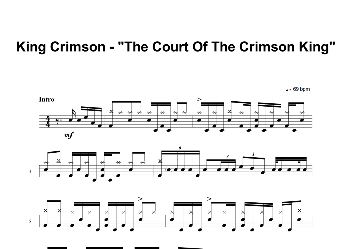 King Crimson《The Court Of The Crimson King》架子鼓谱