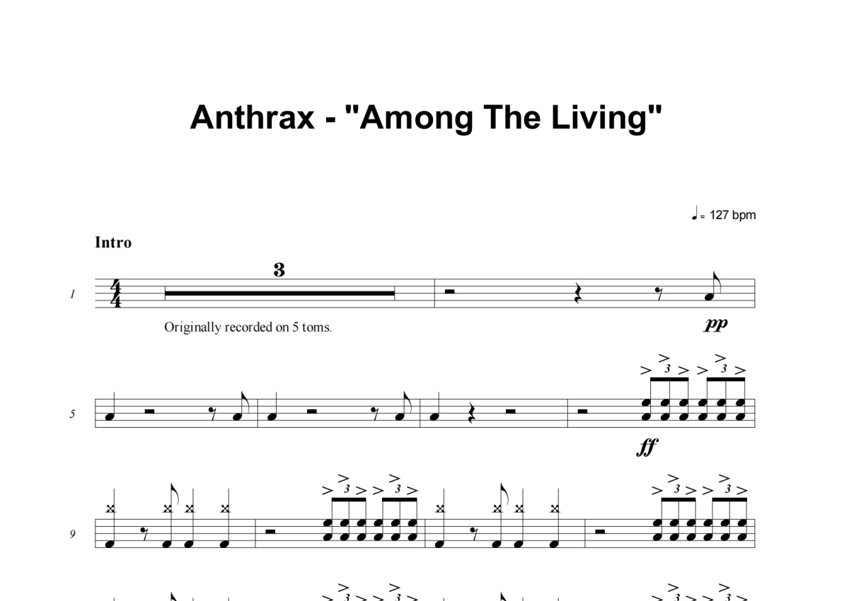 Anthrax《Among The Living》架子鼓谱