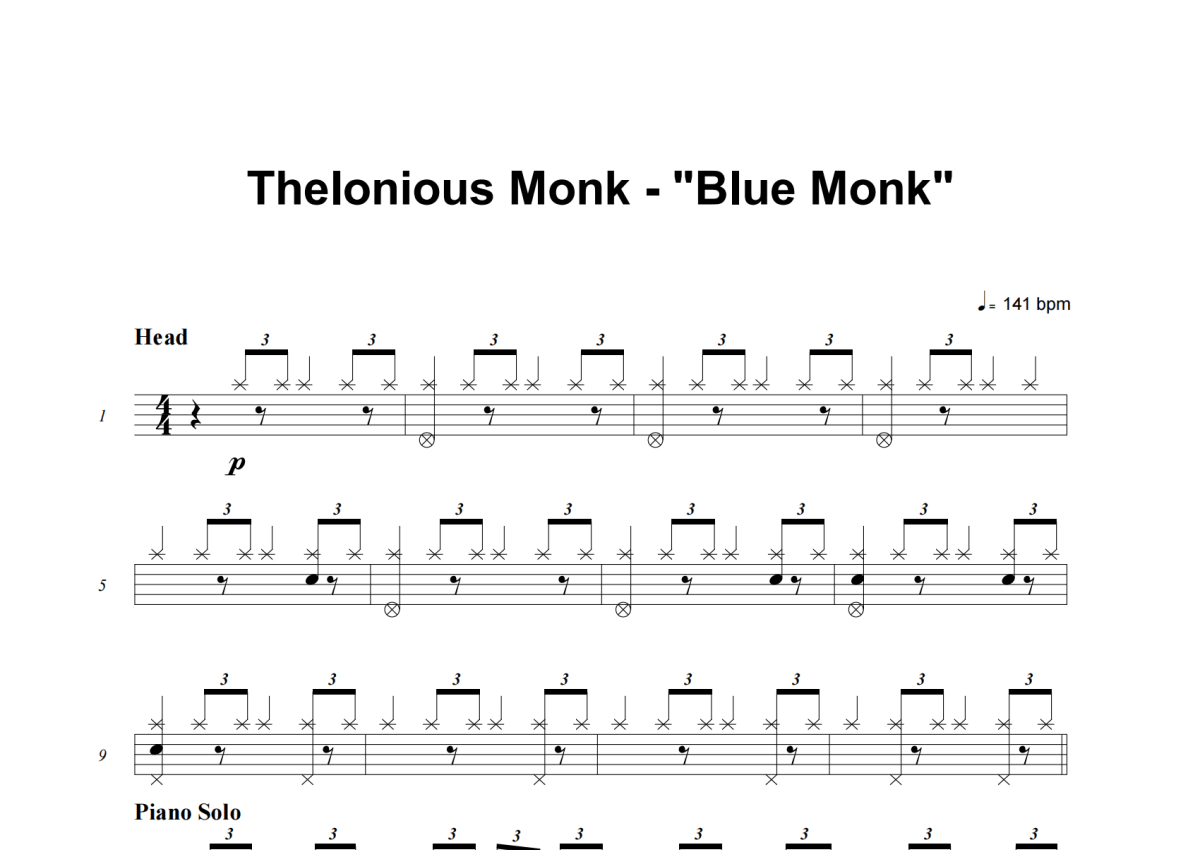 Thelonious Monk《Blue Monk (Easy Version)》架子鼓谱