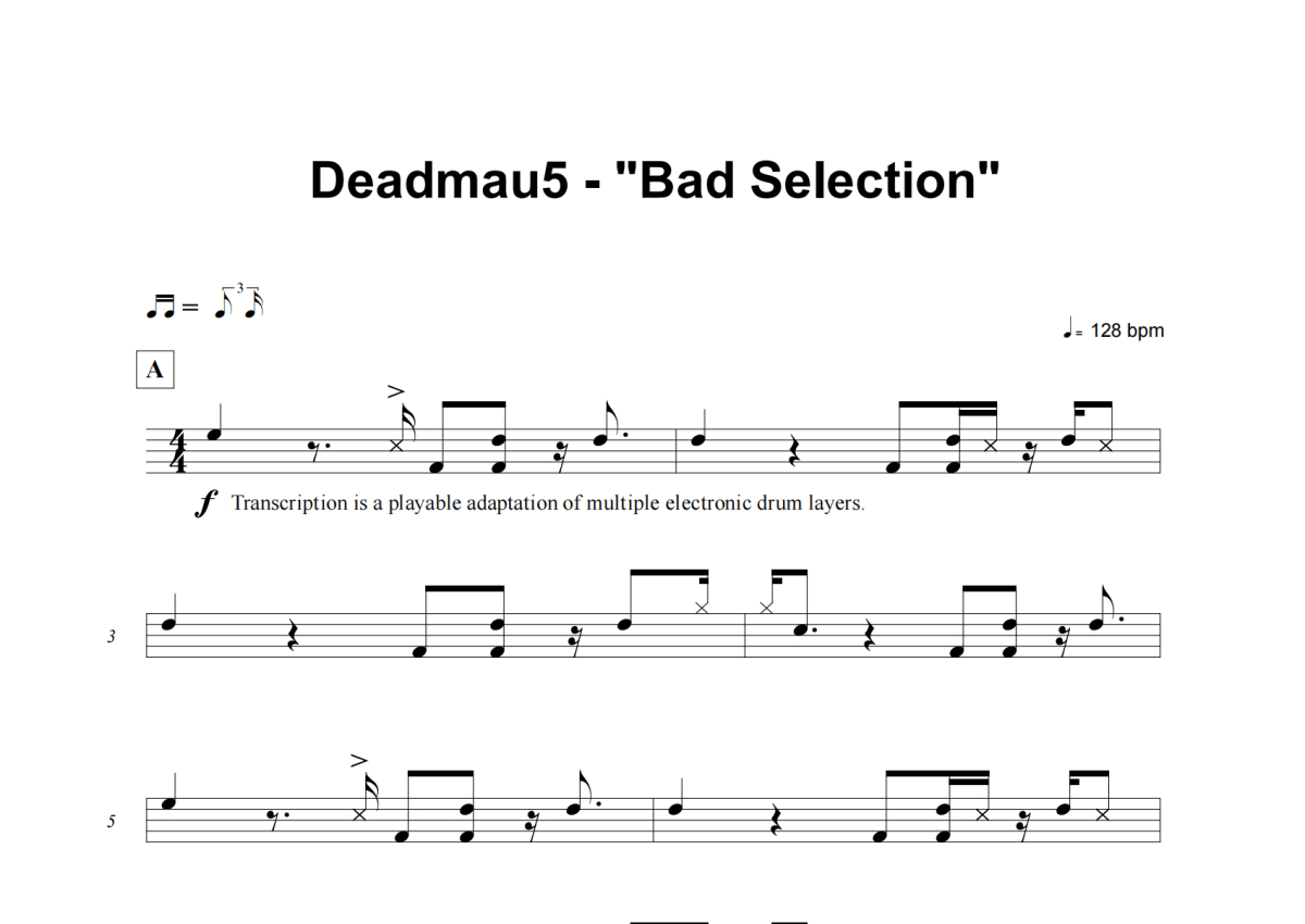 Deadmau5《Bad Selection》架子鼓谱