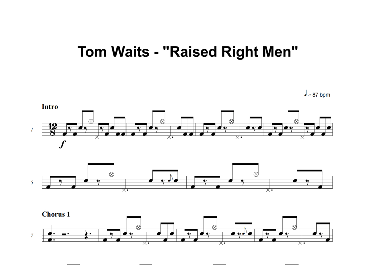 Tom Waits《Raised Right Men》架子鼓谱