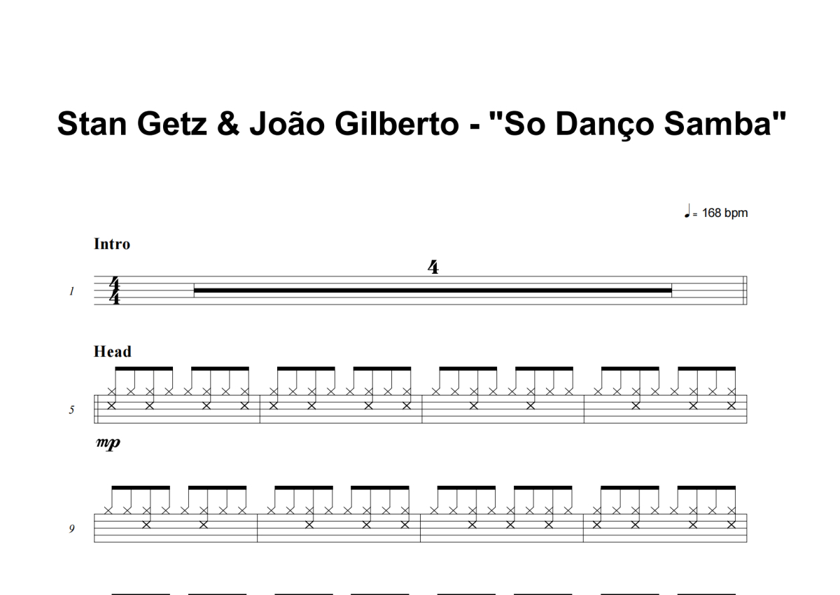 Stan Getz & Joao Gilberto《So Danco Samba》架子鼓谱