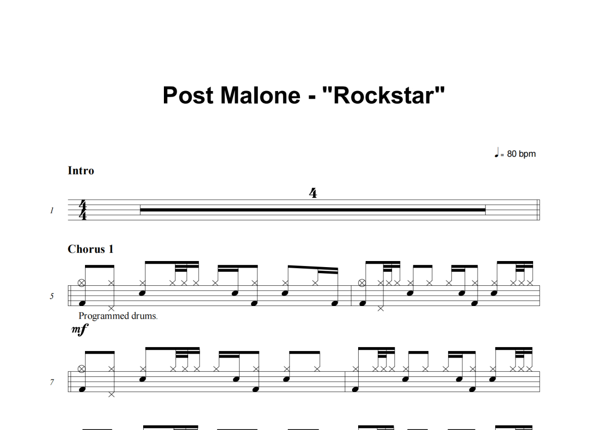 Post Malone《Rockstar》架子鼓谱