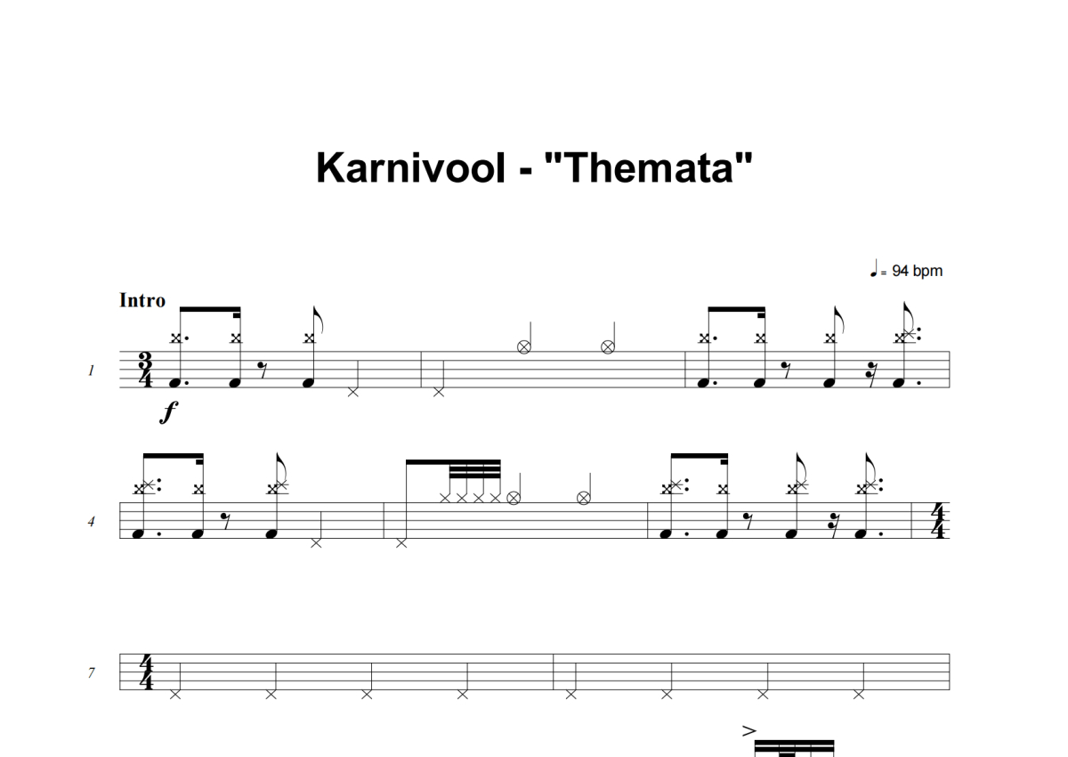 《Themata》是Karnivool演唱的一首歌曲,这份架子鼓谱共有八张高清图谱,图谱由 @失眠的土豆 编配上传,图谱使用五线谱编配,使用这份Themata架子鼓谱,你将能够轻松地敲打出这首Karnivool的Themata,快来尝试吧。