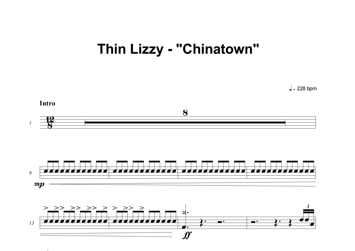 Thin Lizzy《Chinatown》架子鼓谱