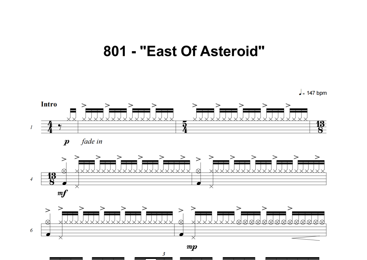 801《East Of Asteroid》架子鼓谱