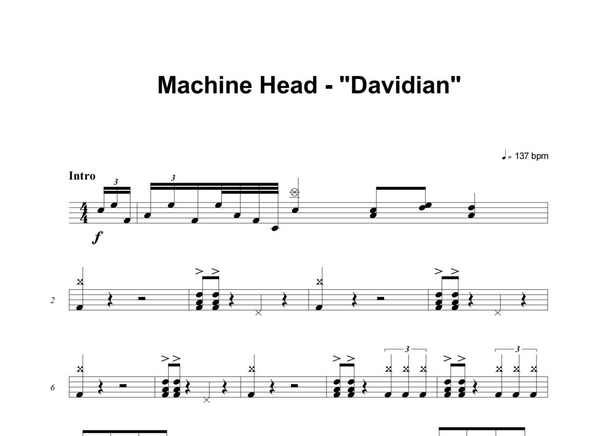 Machine Head《Davidian》架子鼓谱