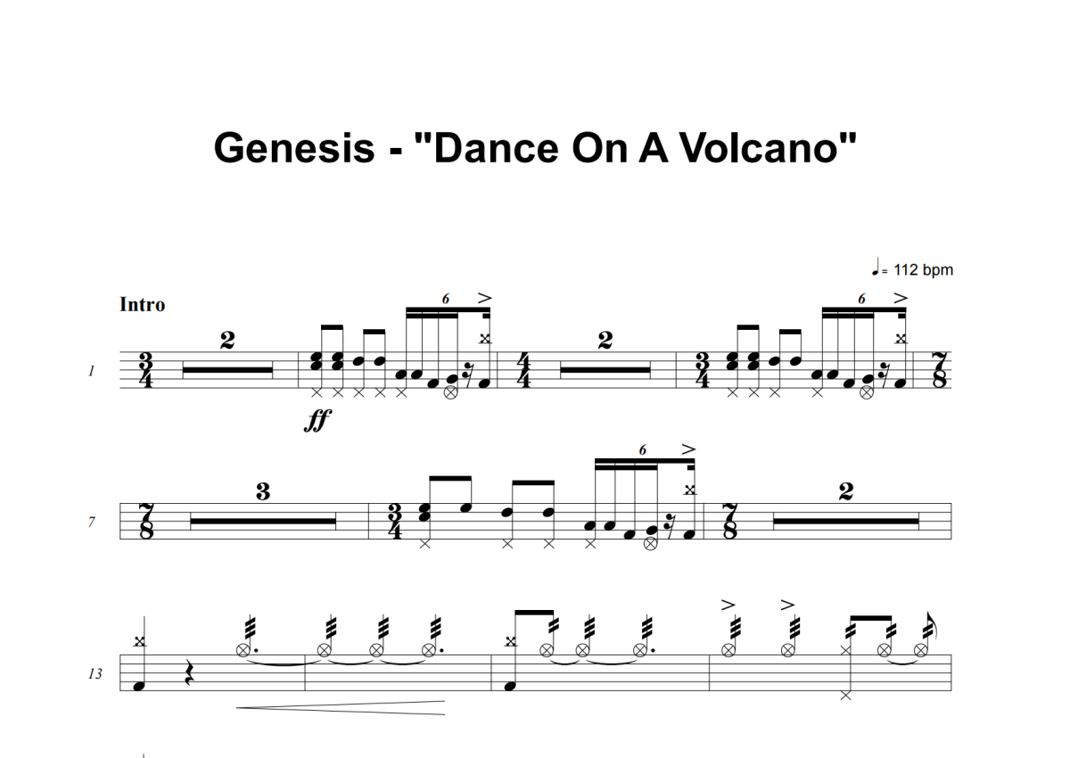 Genesis《Dance On A Volcano》架子鼓谱
