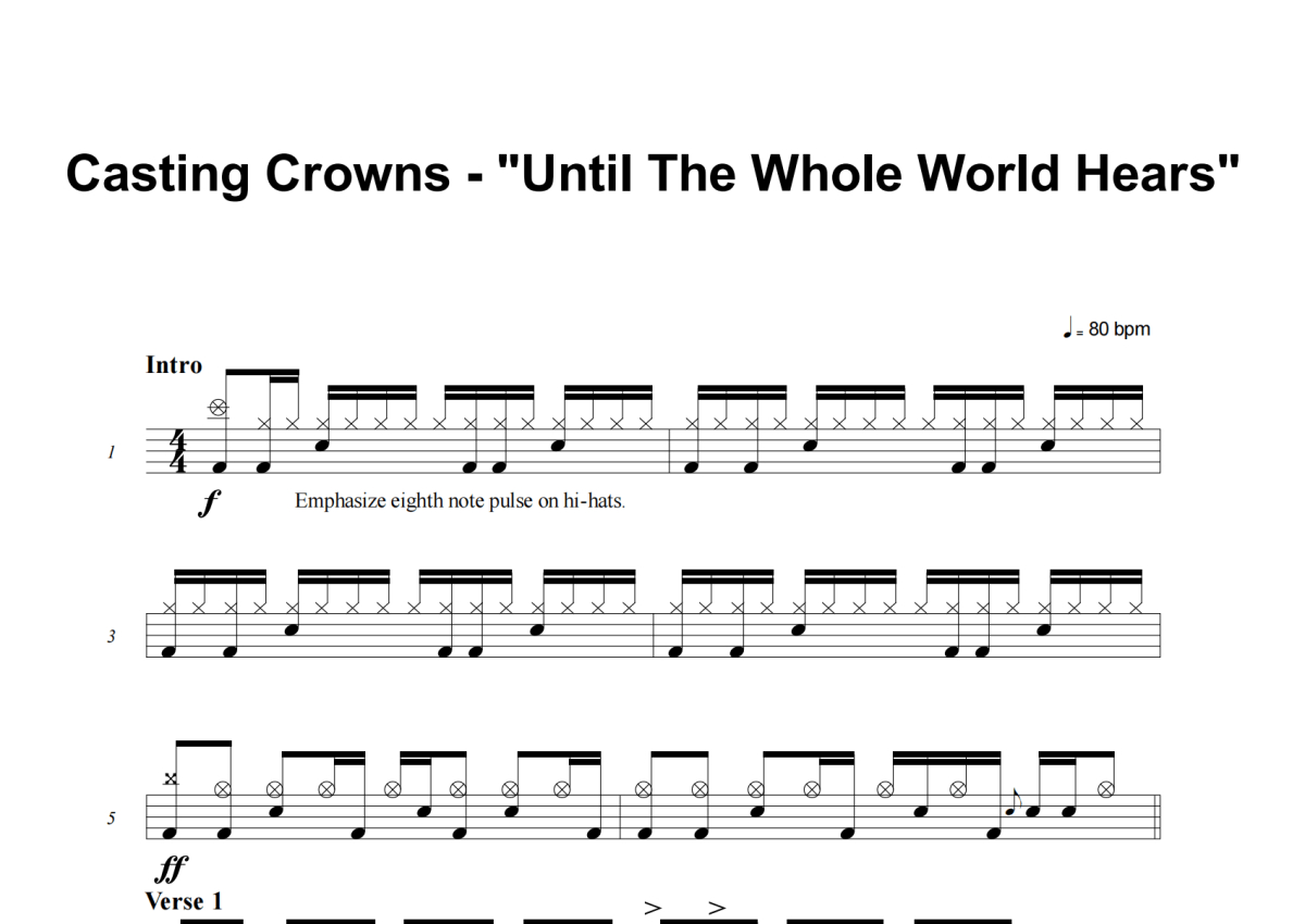Casting Crowns《Until The Whole World Hears》架子鼓谱