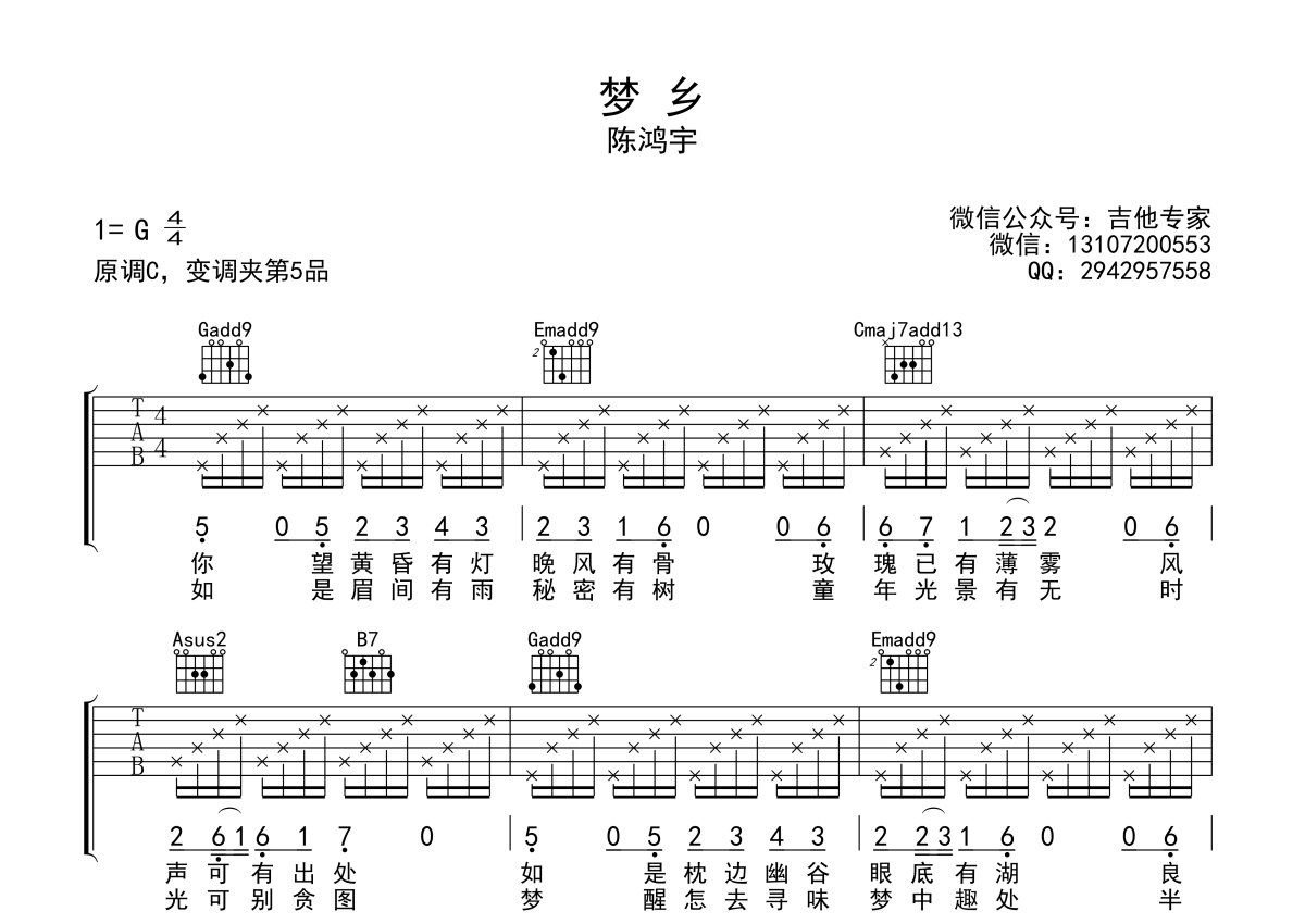 《梦乡》是陈鸿宇演唱的一首歌曲,本吉他谱采用的是C调指法编配,这份吉他谱共有两张高清图谱,图谱由 @吉他专家 编配上传,图谱使用六线谱编配,包含吉他和弦指法、简谱以及歌词部分,使用这份梦乡吉他谱,可以让你更加方便地掌握这首歌曲的弹唱技巧,快来尝试吧。