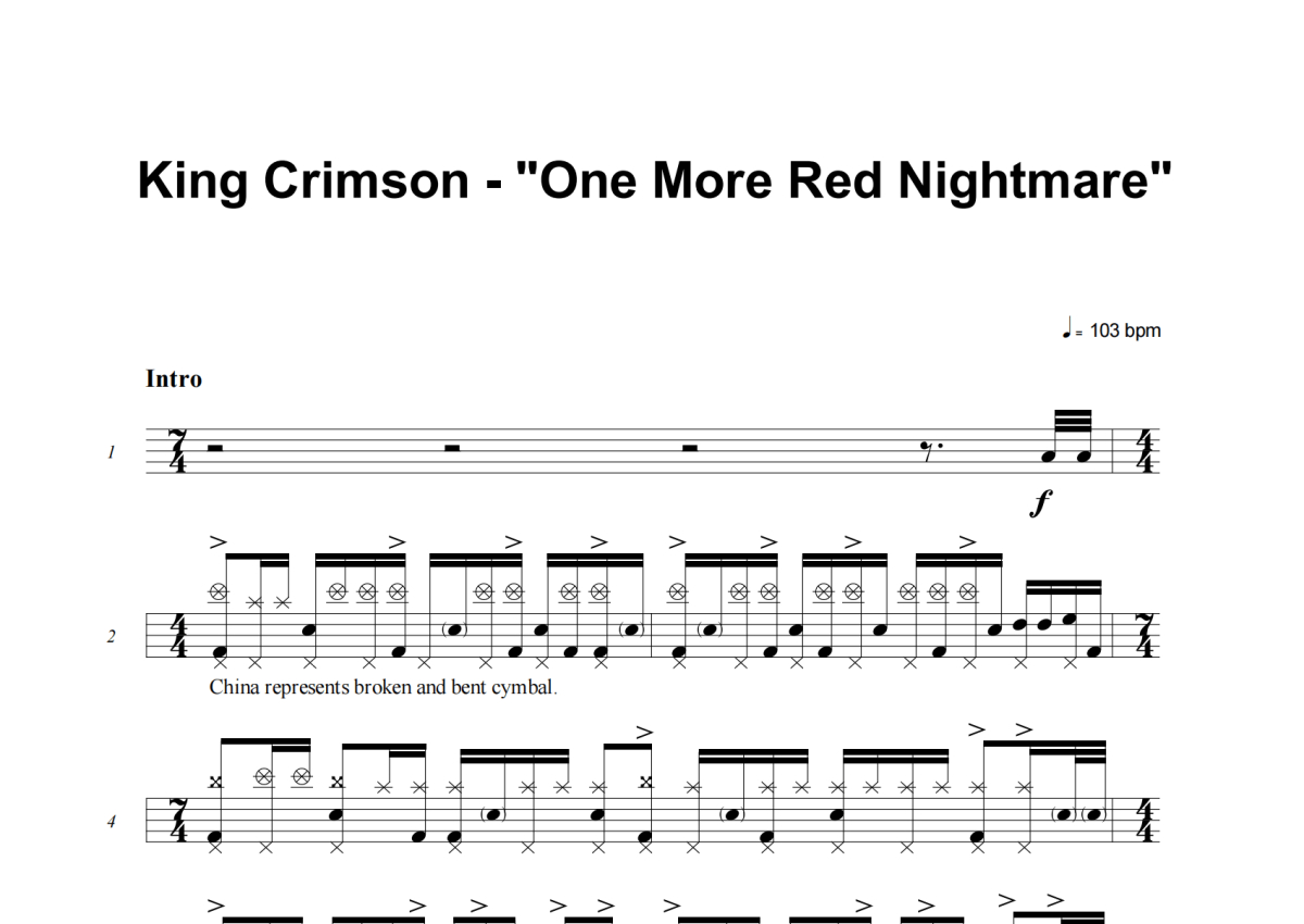 King Crimson《One More Red Nightmare》架子鼓谱