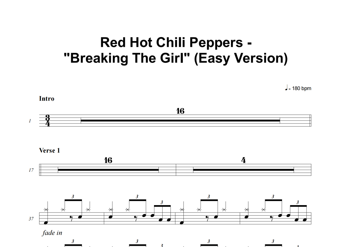 Red Hot Chili Peppers《Breaking The Girl (Easy Version)》架子鼓谱