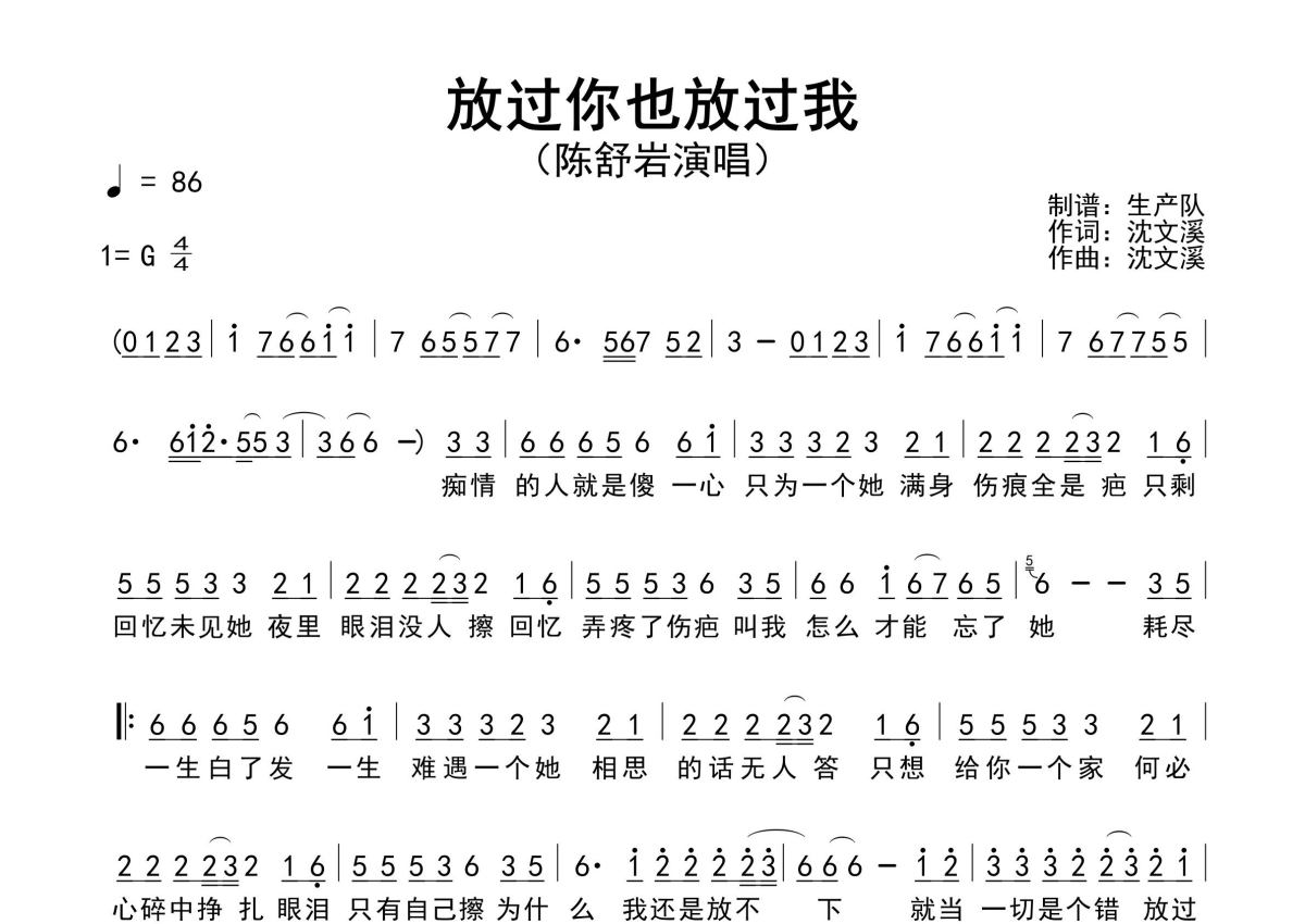 陈舒岩《放过你也放过我》简谱 - 原版简谱