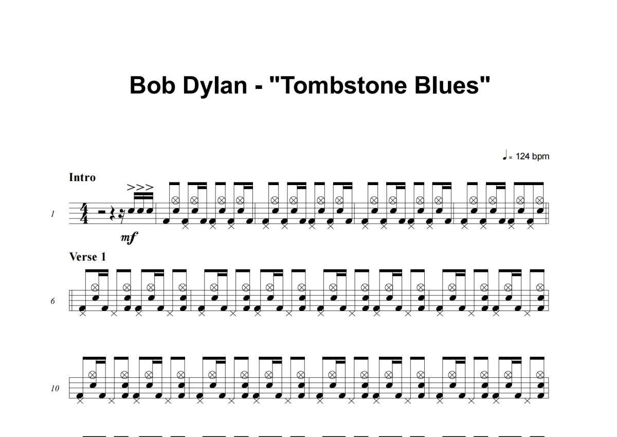 Bob Dylan《Tombstone Blues》架子鼓谱