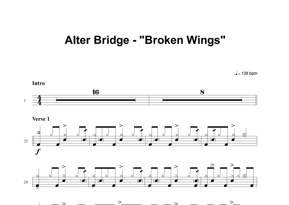 Alter Bridge《Broken Wings》架子鼓谱