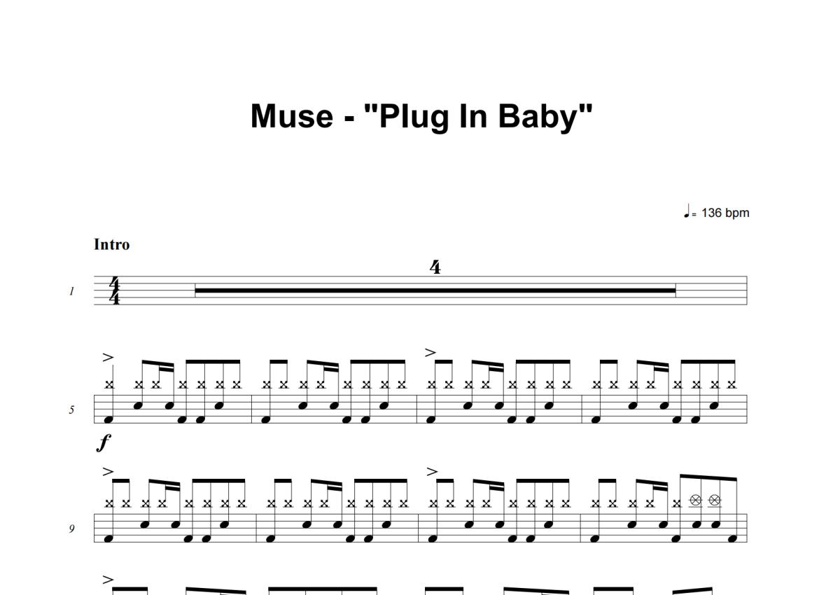 Muse《Plug In Baby》架子鼓谱
