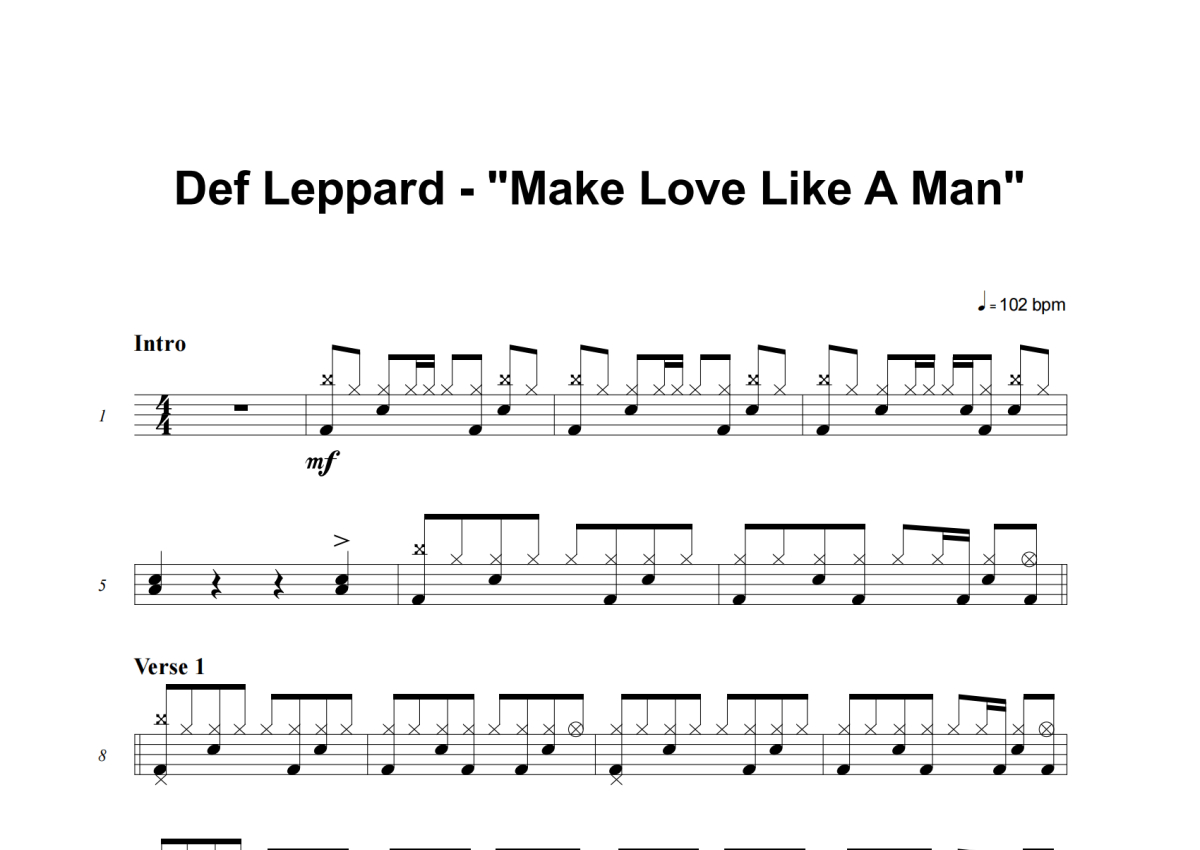 Def Leppard《Make Love Like A Man》架子鼓谱
