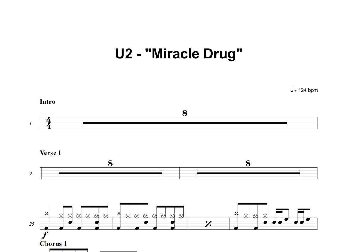 U2《Miracle Drug》架子鼓谱
