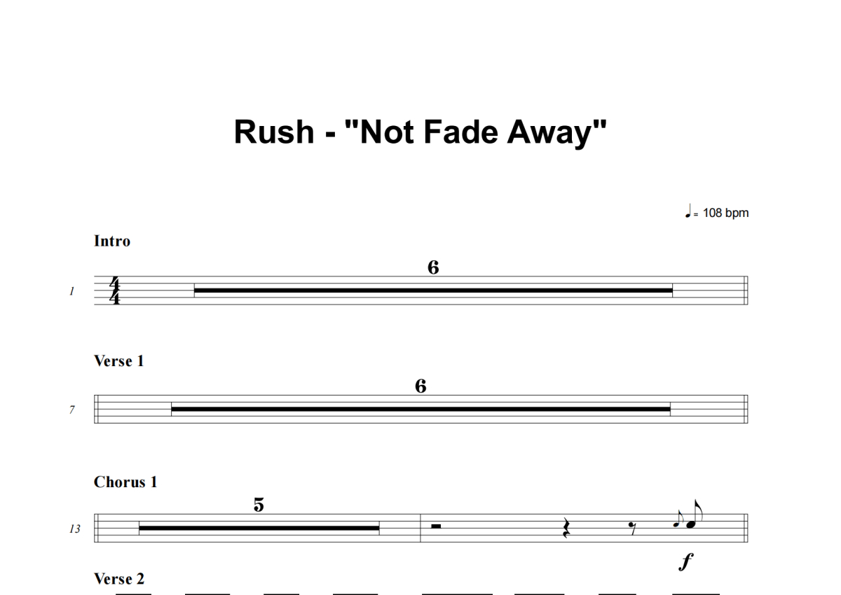 Rush《Not Fade Away》架子鼓谱