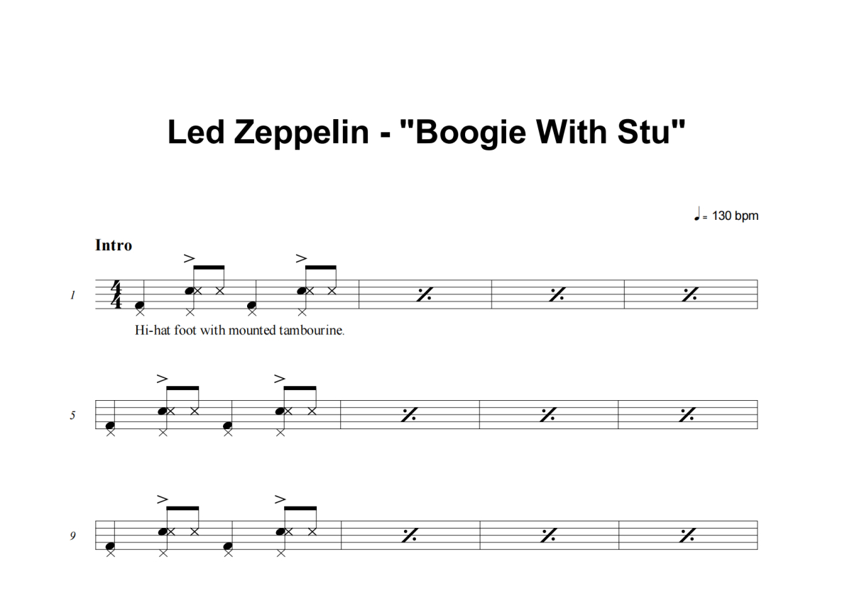 Led Zeppelin《Boogie With Stu》架子鼓谱