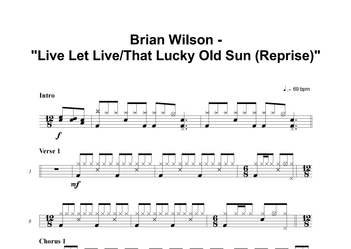 Brian Wilson《Live Let Live_That Lucky Old Sun (Reprise)》架子鼓谱